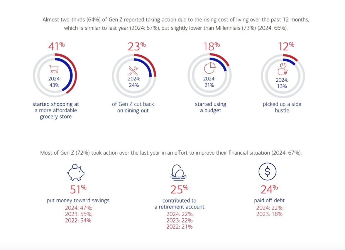 Почти две трети (64%) зумеров в ходе исследования сообщили, что за последние 12 месяцев предприняли какие-то меры в связи с растущей стоимостью жизни.