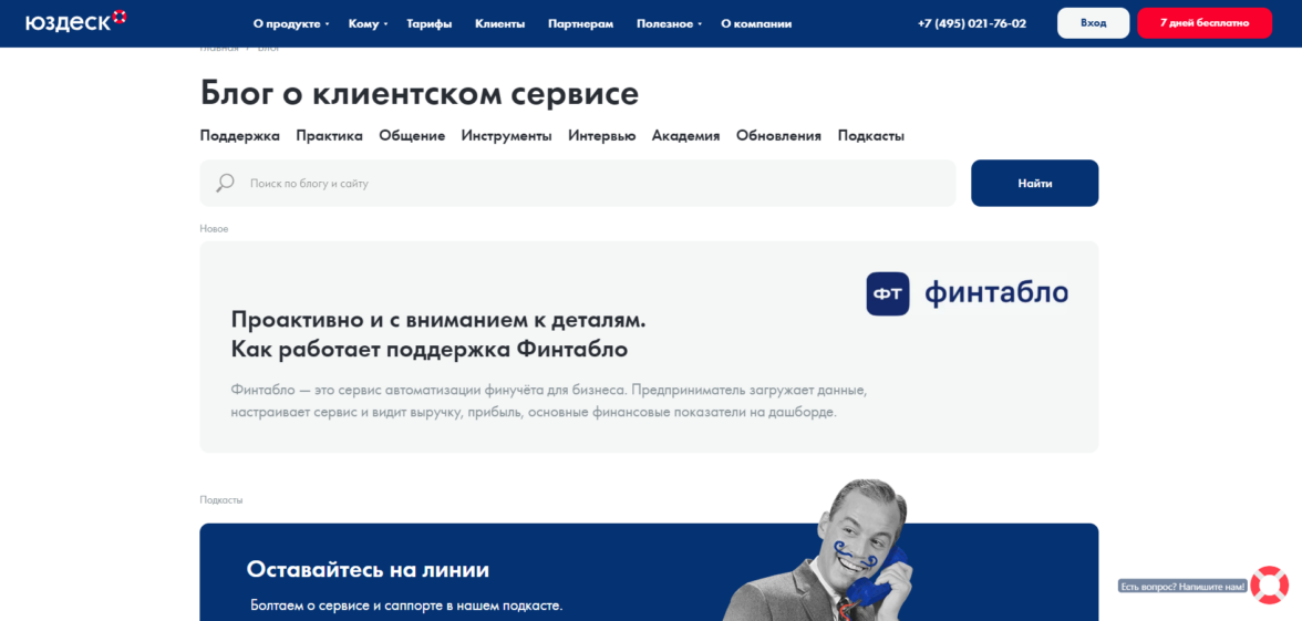 Контент-стратегия. Эксперты в клиентском сервисе. Создают полезные для целевой аудитории материалы, которые напрямую не связаны с продуктом. Активно развивают подкаст. Приглашают внешних экспертов.