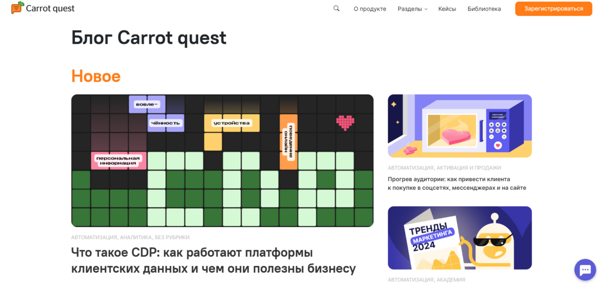 Что полезного. Ребята «съели собаку» на тестировании маркетинговых механик и воронок. В компании развит Growth-маркетинг. Чем и делятся щедро с читателями блога и других каналов. В качестве лидов магнитов предлагают обучающие материалы, подборки воронок. Пишут кейсы клиентов с цифровыми результатами. Дают пользу не только маркетологам, но и представителям команд сервиса и продаж.