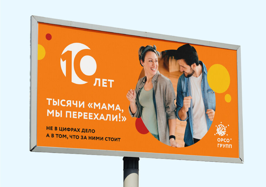 Задача: показать, в чем ценность 10 лет работы «Орсо групп». Разработать креативную идею, визуальную айдентику новой кампании и перенести ее на носители.