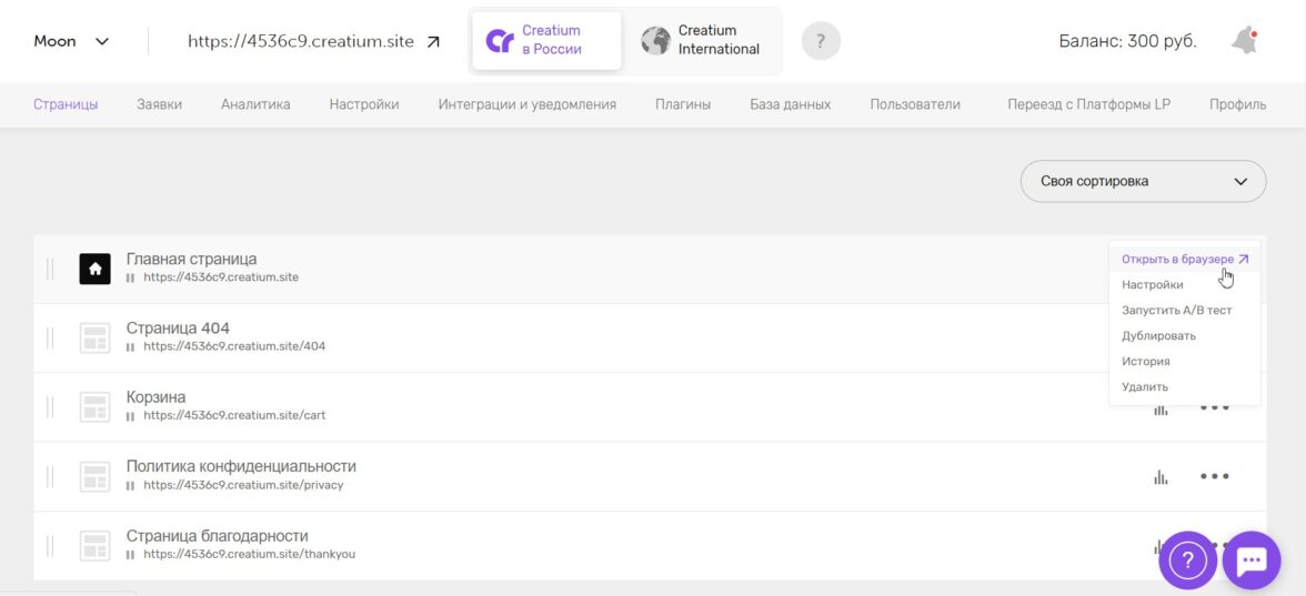 Для открытия интернет-магазина в базовый пакет добавляют дополнительные опции, например, корзину, A/B тестирование, интеграции, мультилендинг, платежные системы. За все это нужно доплатить по 100 рублей.