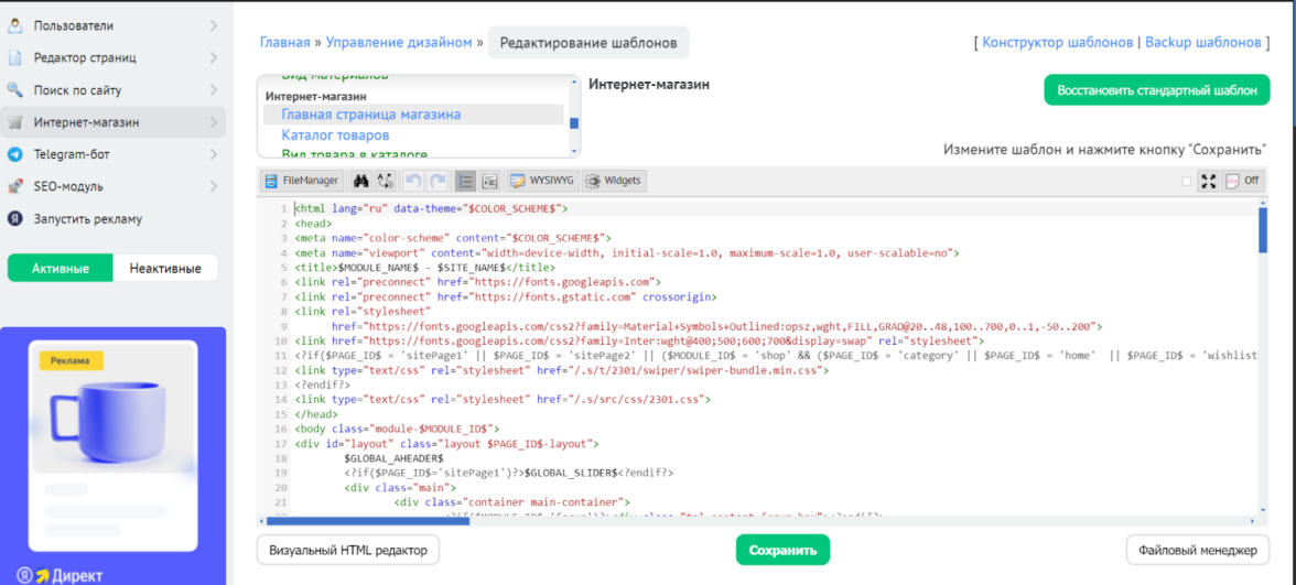 • Доступ к редактированию CSS, HTML, JS.