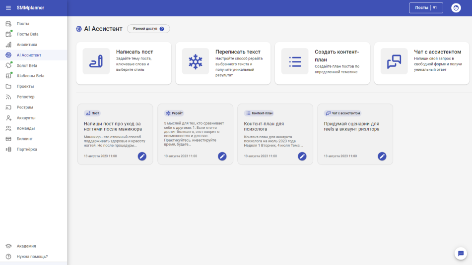 AI Ассистент для написания постов и контент-планов в сервисе отложенного постинга SMMplanner