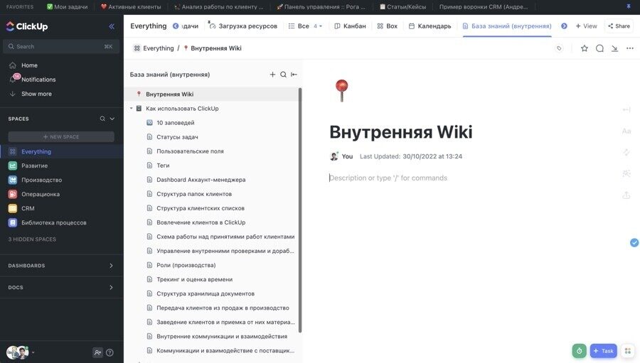 Мы также подготовили для вас подробное руководство по внедрению ClickUp в агентстве, а также видео-демонстрацию основных возможностей.