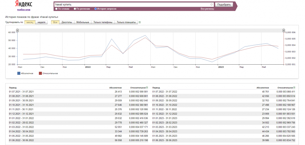 Например, с помощью динамики брендовых запросов. Смотрим, как меняется количество пользовательских запросов, содержащих название вашего бренда, до, во время и после использования оффлайн-форматов. Делать это можно с помощью Яндекс Wordstat или Google Search Console. При этом стоит учитывать, что на динамику может повлиять множество факторов: использование одновременно разных форматов рекламы, сезонность спроса и пр.