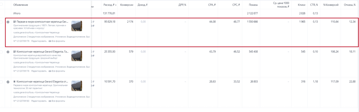 Система определила более конверсионный вариант объявления и отдает приоритет в показах ему