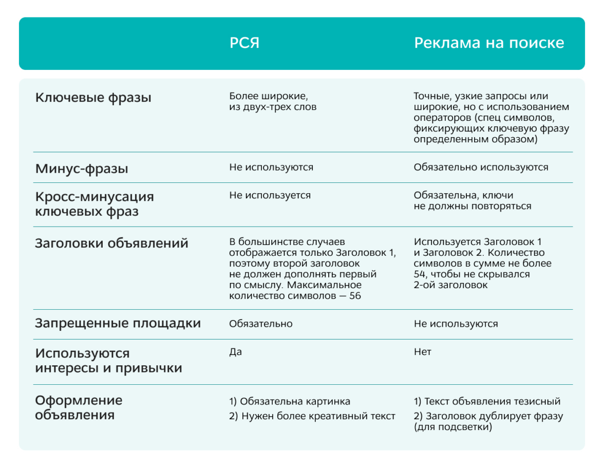 Настройка кампаний на поиске и в РСЯ сильно отличается: