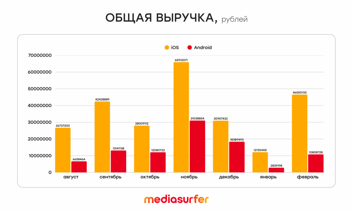 • Общая выручка кампании за период с августа по февраль составила более 350 млн рублей.