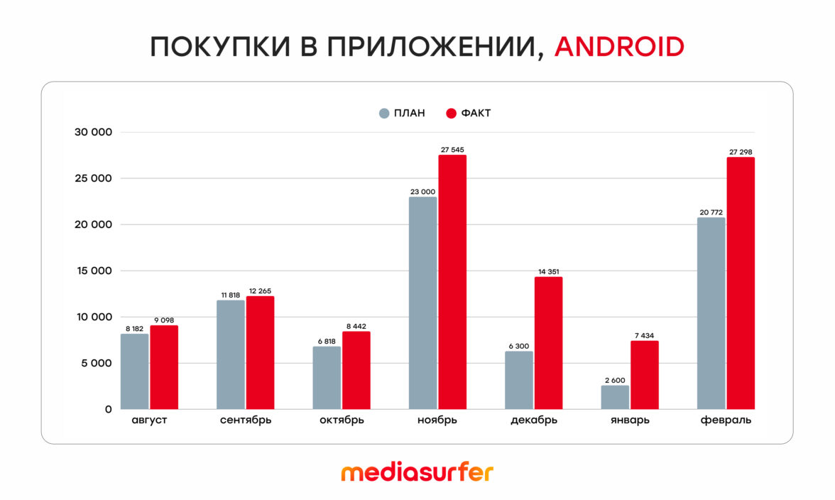 На Android кампания продолжила демонстрировать стабильный рост: выполнение плана в декабре составило 228%, в январе — 286%.