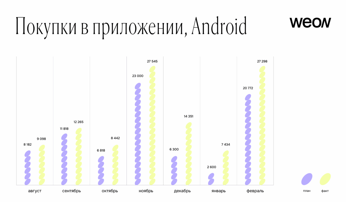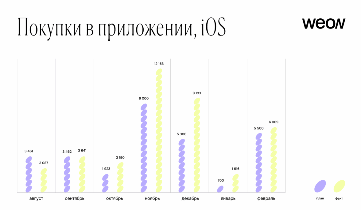 Эти корректировки быстро повлияли на результаты: уже через месяц выполнение плана на iOS составило 165% и продолжило расти, достигнув 230% в декабре.