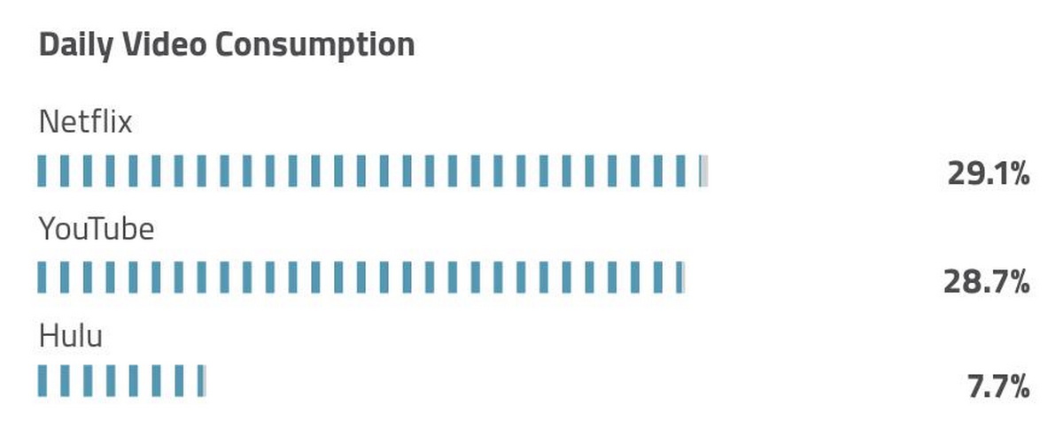 Две главные платформы для просмотра видео у тинейджеров США – Netflix и YouTube. Их смотрят почти равное количество подростков – 29,1% и 28,7%, соответственно. Разница в 0,4% невелика. Однако этот результат кажется неожиданным.