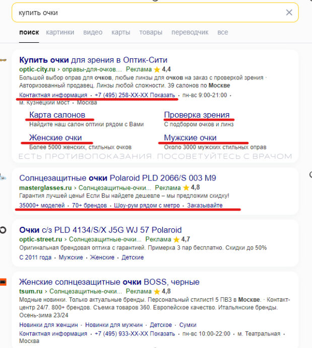 Расширения в объявлениях Яндекс Директ