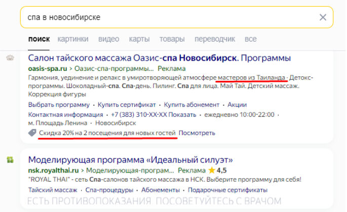 Пример УТП в контекстной рекламе