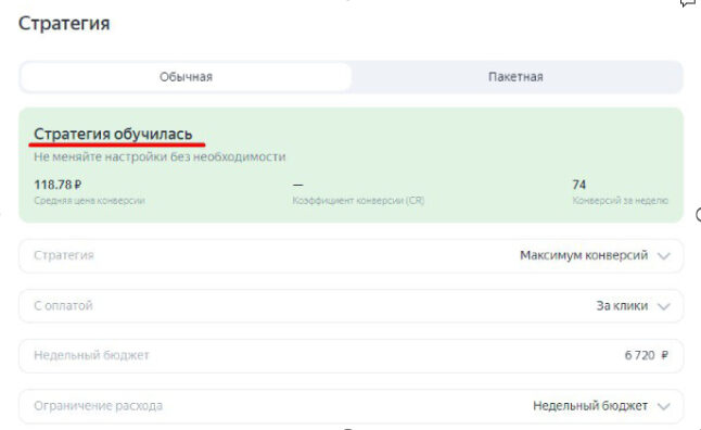 Если вы выбрали оплату за конверсии, но ваша стратегия не обучилась, то она не будет работать должным образом. Для корректной работы нужно учесть пару факторов: