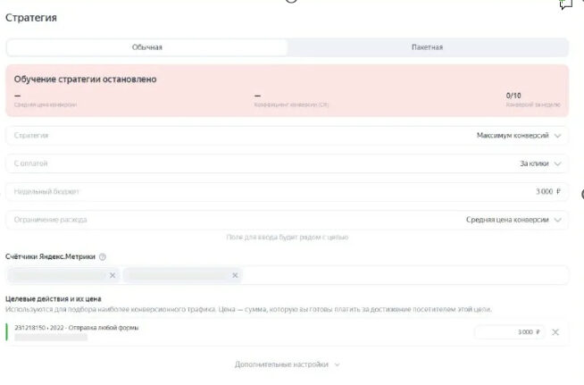 Обучение стратегии в Яндекс Директ остановлено