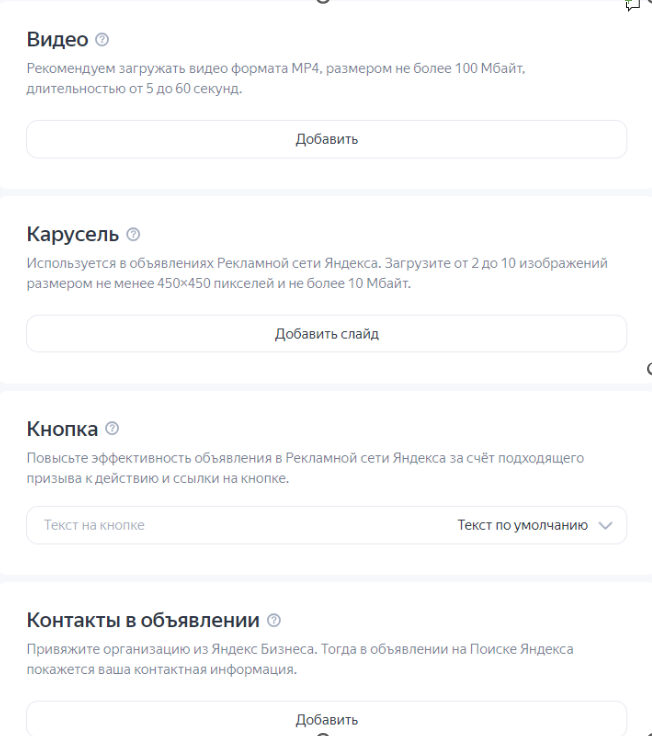 Предлагаем список дополнений, которые помогут привлечь внимание к вашему объявлению, выделить вас на фоне конкурентов и позволят показываться в расширенном формате: