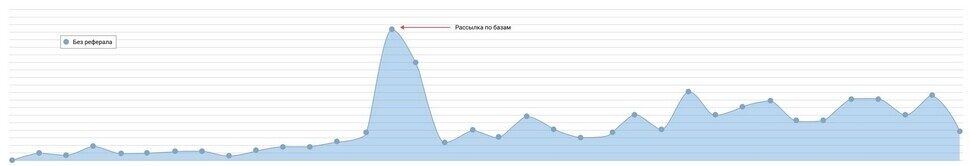На графике видно, что максимальный спрос действительно приходится на период, когда до мероприятия остается 1–2 недели. А по заметному пику можно увидеть период, когда клиент запустил почтовую рассылку по своей базе пользователей, уже посещавших мероприятия.