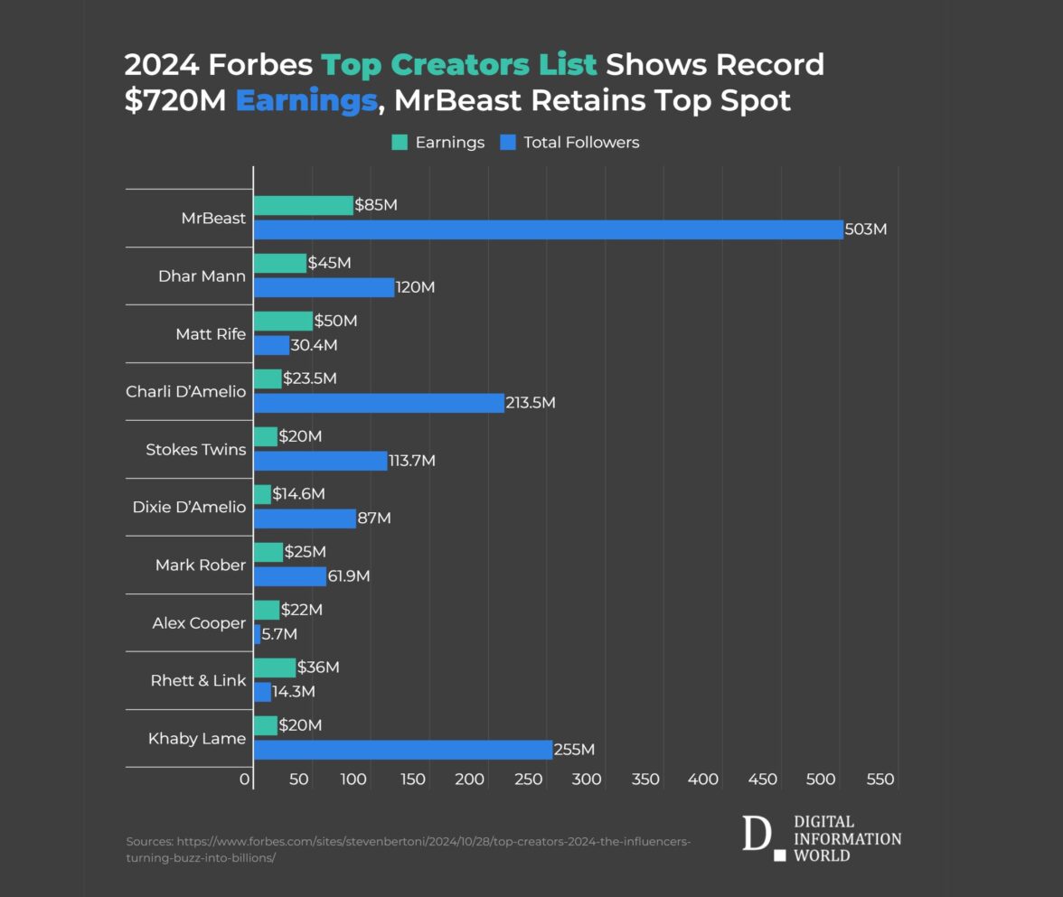 $180 млн на троих: Forbes обновил список самых богатых блогеров