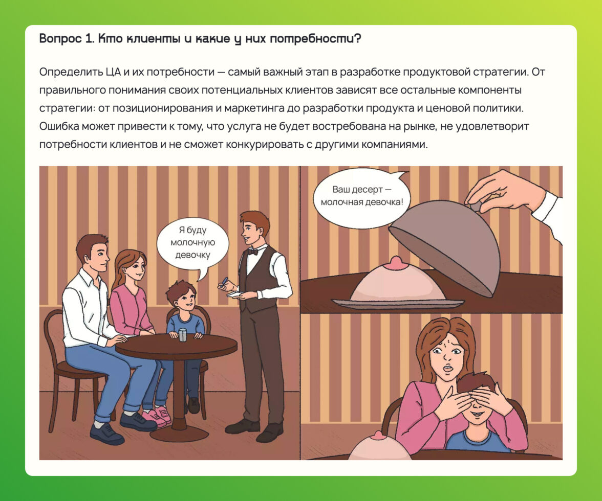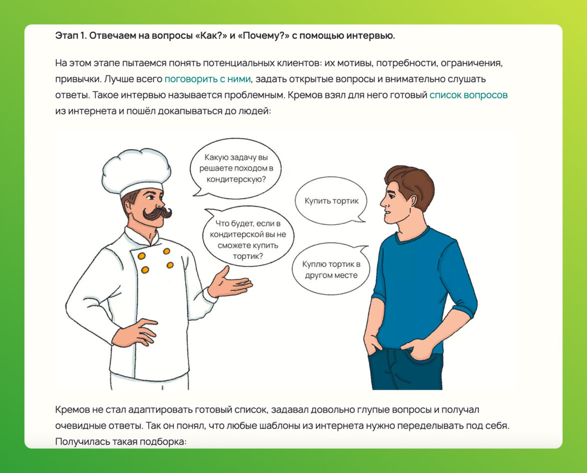 Написать 19 лонгридов, которые складываются в единый курс. Каждая статья — отдельная тема: от постановки целей до учёта продаж в CRM. При этом все статьи должны быть связаны общим героем и нарративом, чтобы читатель не просто изучал теорию, а следил за историей.