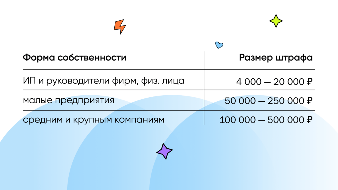 Штрафы суммируются по каждому нарушению. Вы — большая компания. Не передали отчет по акту или статистике в ЕРИР, а ещё не показали токен в рекламе — до 800 000 рублей.