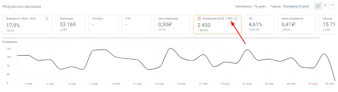 KPI (Key Performance Indicators — ключевые показатели эффективности) — показатели, которые помогают задать цели и оценить эффективность достижения нужных метрик. Например, в качестве KPI может использоваться цель достижения «1000 кликов в неделю» или «CPA до 500 рублей».