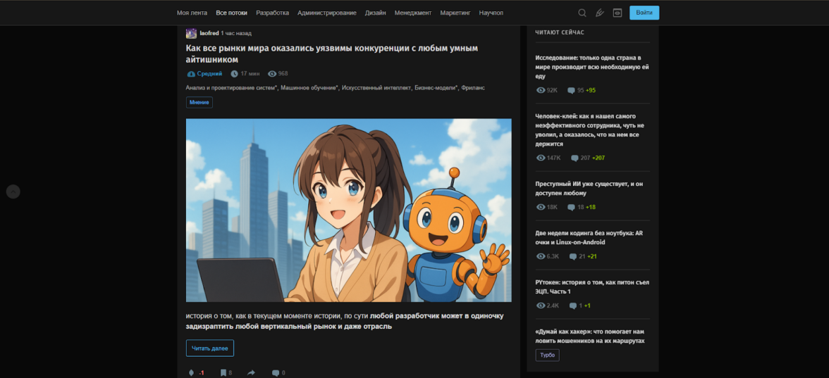 Основные направления: IT, разработка, наука, образование и цифровые продукты. Публикации должны быть полезными и проверенными — иначе пост заминусуют или удалят. У «Хабра» есть активное комьюнити, и оно, как правило, открыто критикует, если видит повод.