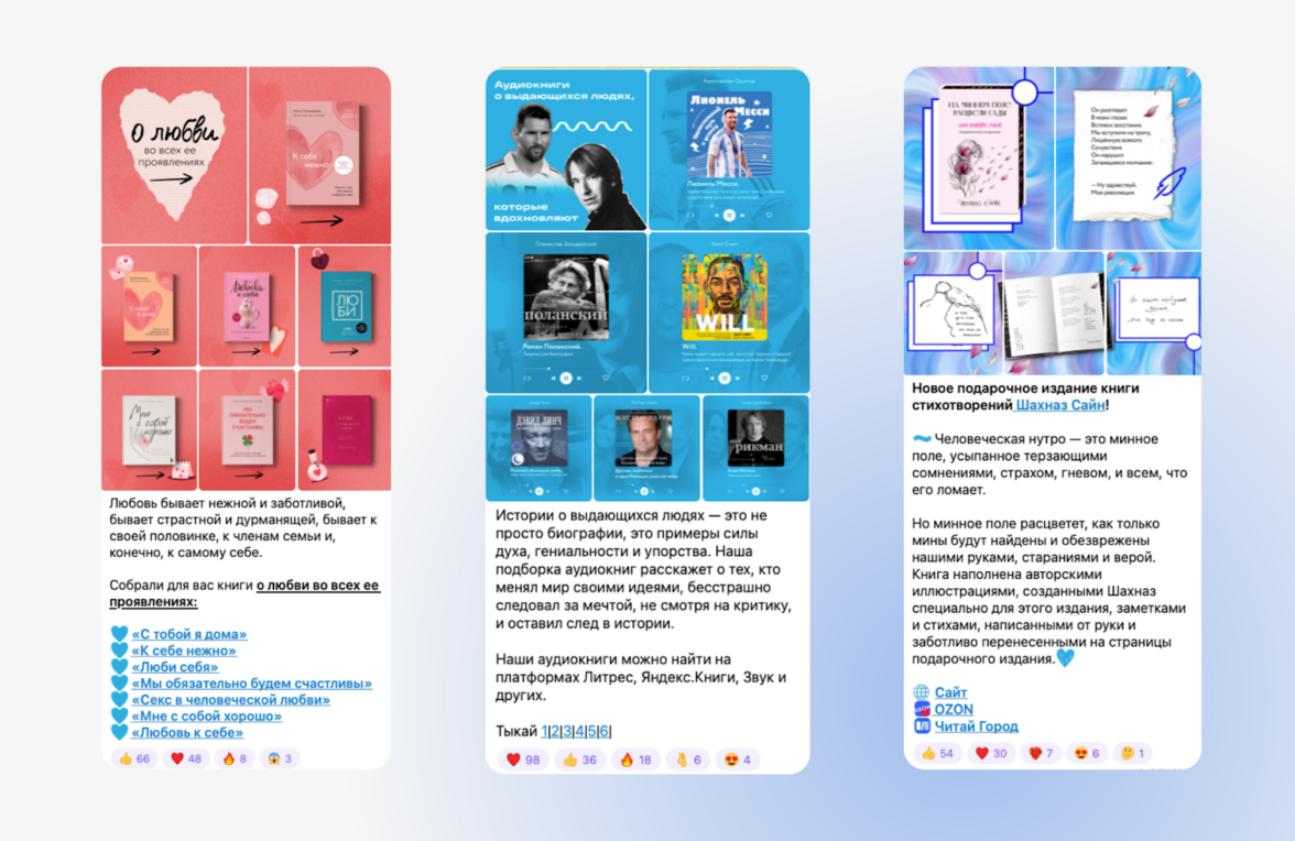 Высокая эффективность: посевы дают возможность размещать контент в каналах, которые максимально соответствуют интересам целевой аудитории. Это позволяет охватить читающую аудиторию, заинтересованную в нон-фикшн литературе, и получить максимальный эффект от размещений.
