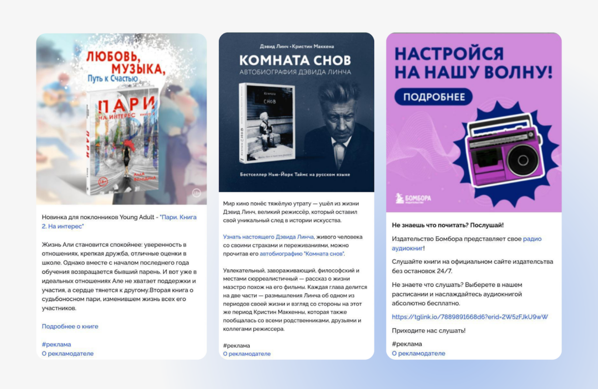 +25 000 подписчиков и лидерство в нише за 3 месяца: как «БОМБОРА» продвигает книги через нативную рекламу в Telegram