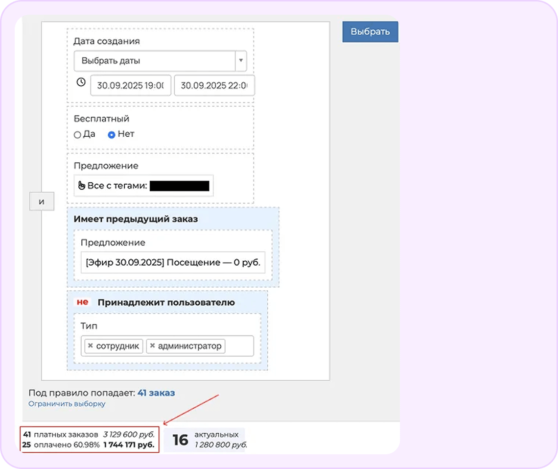 Финальный конвертер внутри воронки — живой двухчасовой вебинар с экспертом на платформе Bizon365. Во время вебинара эксперт анонсировал флагманский курс, получил заказы на сумму 3,1 млн рублей и фактические оплаты в ходе трансляции на 1 509 710 рублей.
