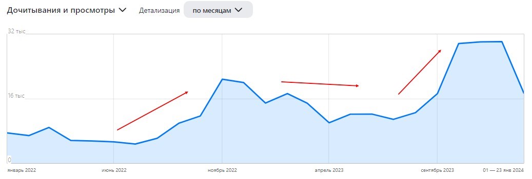 Приятно порадовала динамика с начала 2022-ого года. Мы скорректировали принцип подбора тем и написание материала, который остается актуальным.