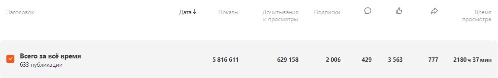 За все время ведения проекта, а это, напомним, с 2019 года по сегодняшний день, нам удалось раскачать канал до следующих показателей: