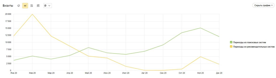 Второй этап: 2020, пандемия и спад трафика из рекомендательной системы