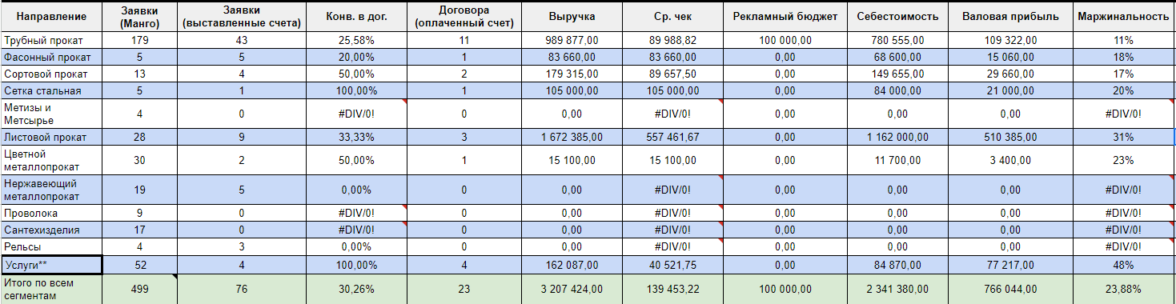 У нашего клиента, который занимается металлопрокатом с упором на трубы разных диаметров и стали, есть правило: считать деньги и стоимость нового клиента с разных каналов привлечения.