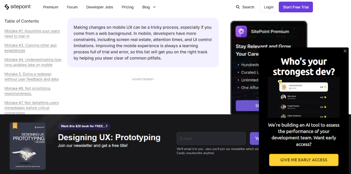 Баннеры на половину экрана, всплывающие одни за другим предложения, яркие кнопки загромождают интерфейс и не помогают бизнесу, а мешают ему. Такое окошко, как на скриншоте, мешает приступить к просмотру контента и вынуждает совершать действия: навести курсор, попасть в крестик и закрыть окно.