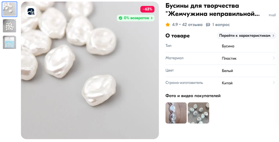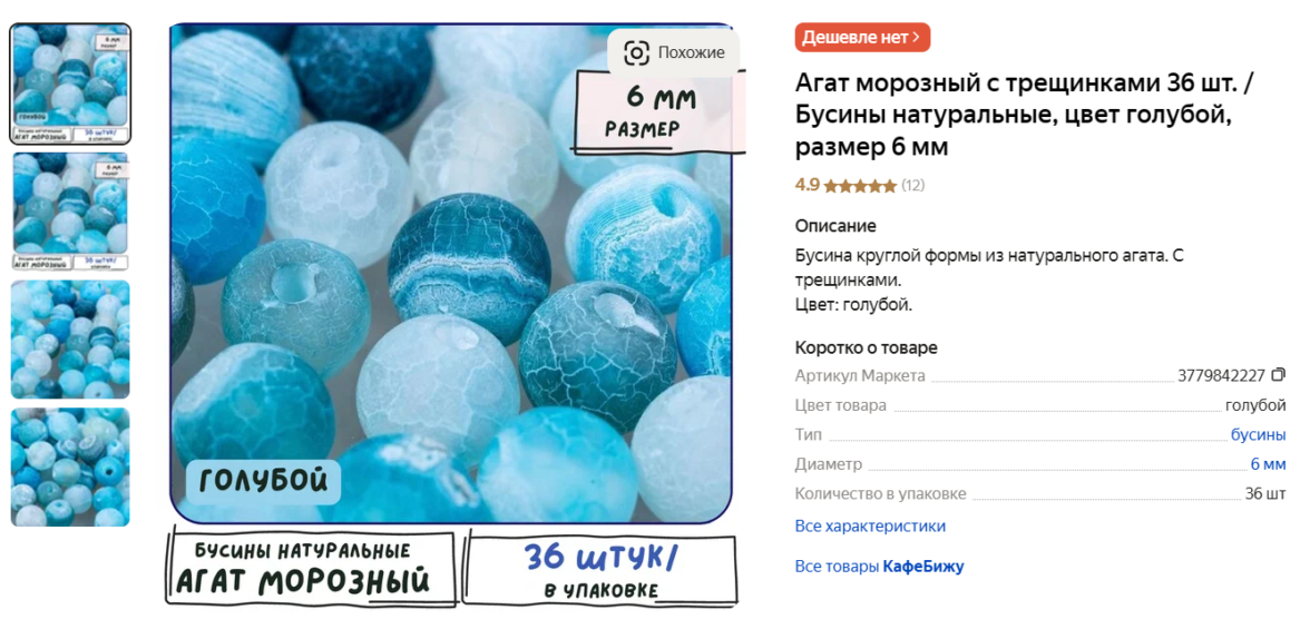 Продавец на Ozon не стал указывать ни размер бусин, ни количество в пачке, ни вес.