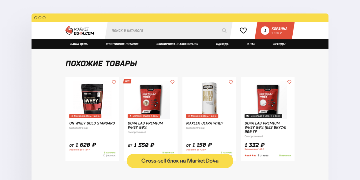Если вы занимаетесь товарами, добавьте подходящие Cross-sell блоки: это и полезный блок, который помогает определиться с выбором, и конверсионный элемент.