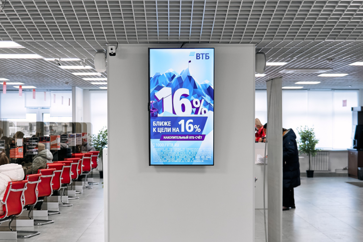Пример indoor-рекламы на видеоэкранах на площадке МФЦ