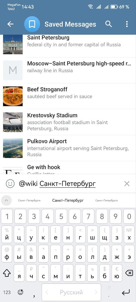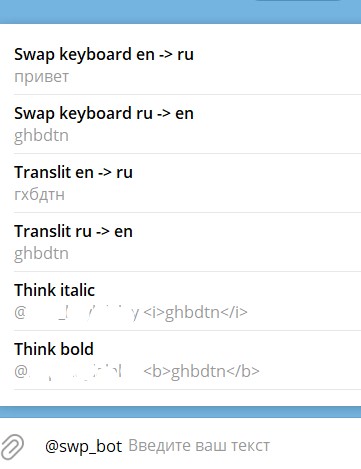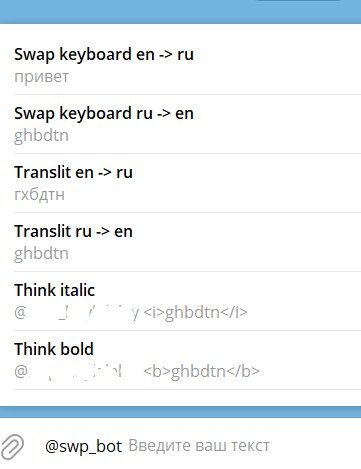 В Телеграме есть и встроенные сервисы. Достаточно ввести в поле для сообщений ключевые слова: