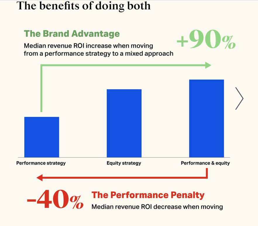 Суть брендформанс-подхода, который продвигает WARC, состоит в том, что реклама, ориентированная на создание бренда, может способствовать продажам как сейчас, так и в будущем. В то же время, реклама, ориентированная на краткосрочные продажи, тоже укрепляет бренд. Когда бренд-билдинг и перформанс работают сообща, эффект «мультипликатора» растет. Но для его бесперебойной работы performance-кампании также должны быть связаны с миссией и ценностями бренда, считают в WARC.