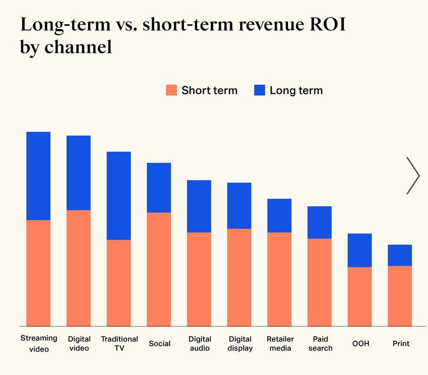 Самыми эффективными медиаканалами как с точки зрения перформанс-маркетинга, так и строительства брендов, по мнению WARC, являются видеостриминг, онлайн-видео и эфирное ТВ. По перформанс-продвижению — онлайн-видео, социальные сети и стриминг.