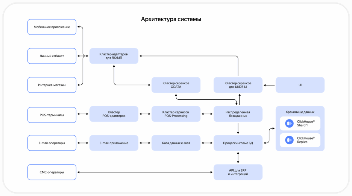 Для создания онлайн- и офлайн-отчётов и другой аналитики команда проекта выбрала Yandex Managed Service for ClickHouse®. Накопленные за сутки данные из ClickHouse® передают в хранилище Yandex Object Storage. Сейчас их уже более 50 ТБ. На основании этих данных строят аналитику по программе лояльности.