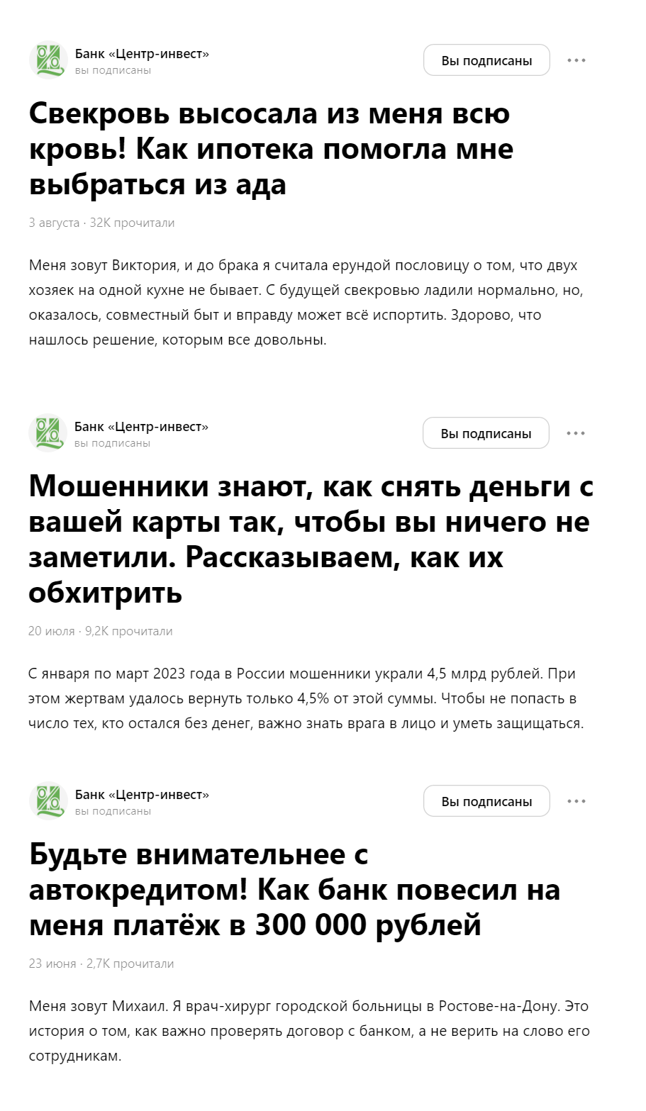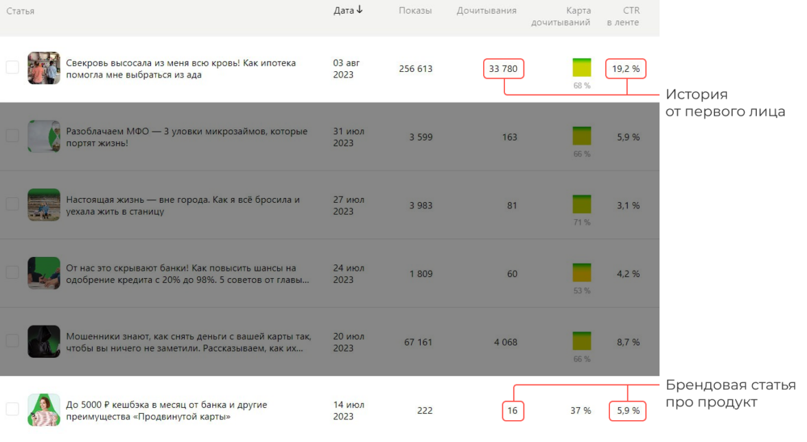 С заказчиком определили фокус в нашем контенте для Дзена — какие услуги хотим продавать. Это ряд финансовых услуг, которые мы хотим продвигать на жителей регионов 45+ — ипотека или кредитная карта.Для Центр-инвеста наши авторы подготовили разноформатные материалы, которые попадают в интересы целевой аудитории.