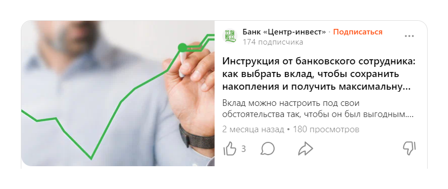 Мы хотели повысить узнаваемость банка «Центр-инвест» — Дзен приблизил нас к этой цели.