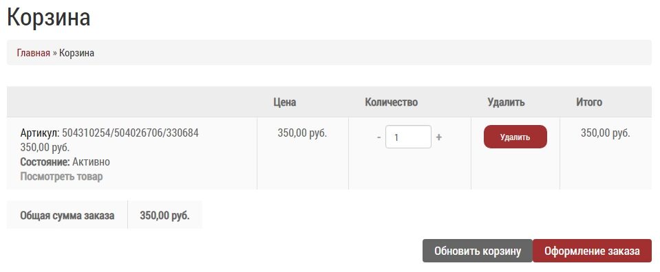 Обязательные элементы корзины: