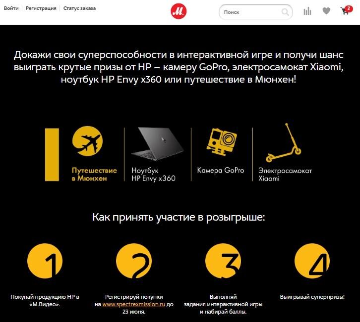 Фрагмент лендинга, посвященного розыгрышу призов