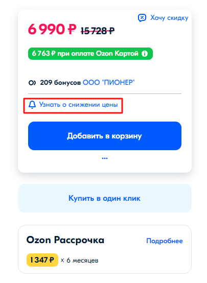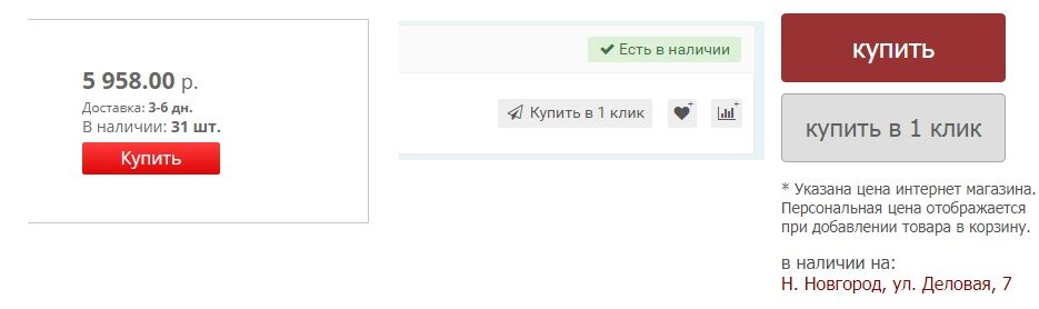Чаще всего кнопку покупки в один клик делают менее заметной, чем кнопку добавления в корзину. И это правильно: покупка в один клик означает, что человек оформляет заказ и уходит, а добавление в корзину может несколько раз повторяться, что увеличивает средний чек.