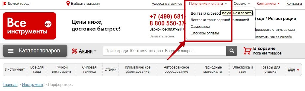Условия доставки в карточке товара — все просто и понятно