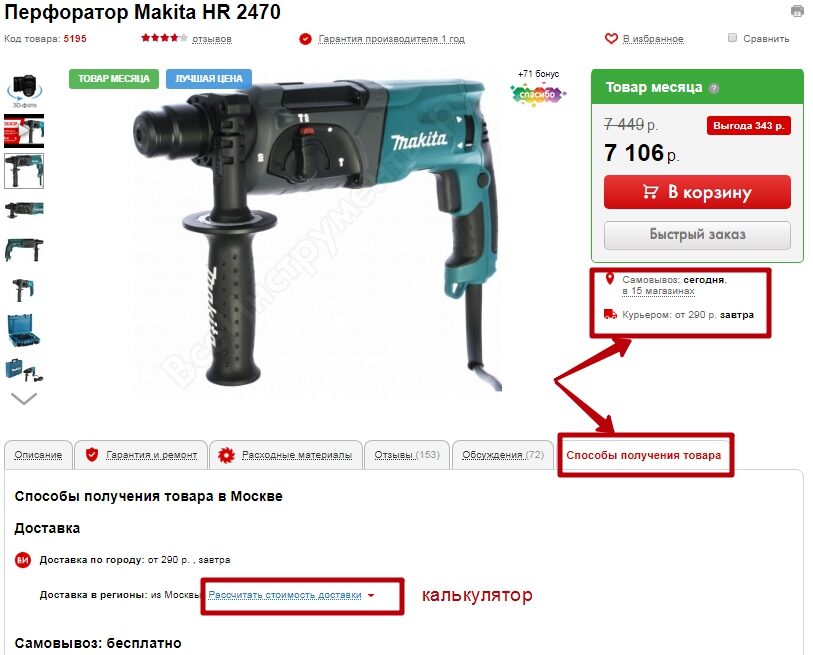 Но этого мало: разместите основные условия доставки в карточке товара. Так они будут всегда на виду, и пользователю не придется лишний раз отвлекаться от покупок и уходить на страницу с условиями доставки.