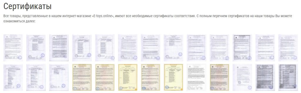 Для подтверждения качества и подлинности продукции опубликуйте в отдельном разделе магазина сертификаты соответствия. На них покупатели обращают внимание, например, в магазинах детских игрушек или на сайтах промышленного оборудования.