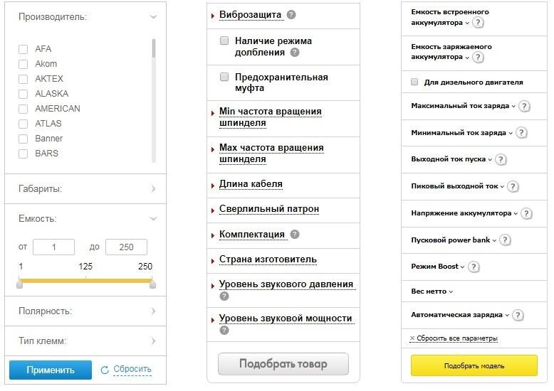 Примеры фильтров на сайтах интернет-магазинов